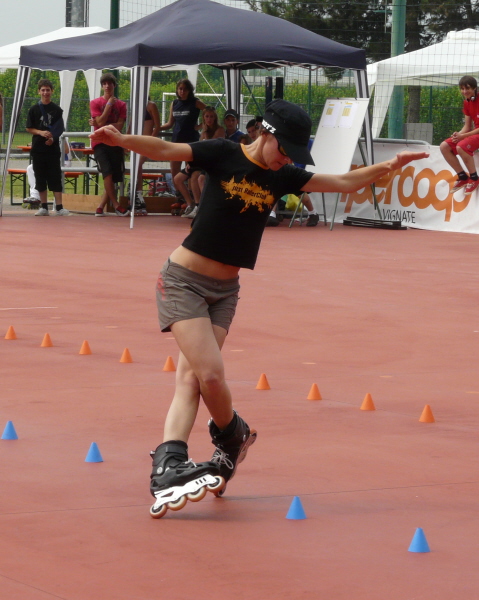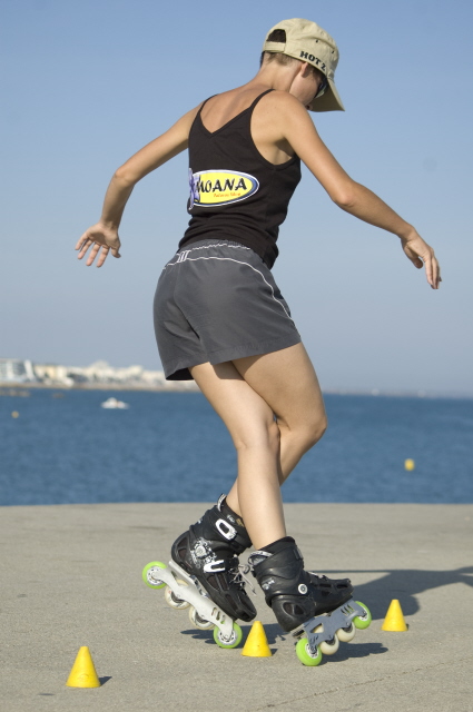 Patino desde que era muy pequeña, sobre hielo y sobre ruedas. He vuelto a patinar y empezado a practicar slalom en 2005.